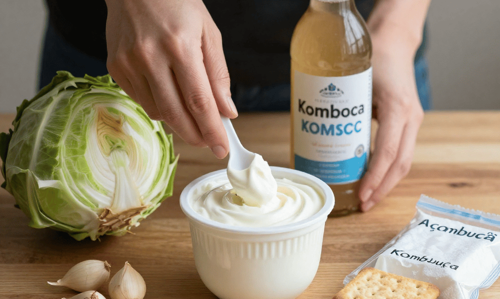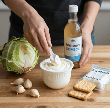 Aposte nos Alimentos Fermentados: Iogurte natural, kefir, kombucha e chucrute são fontes naturais de bactérias psicobióticas. Eles são o "reforço" que seu exército intestinal precisa.